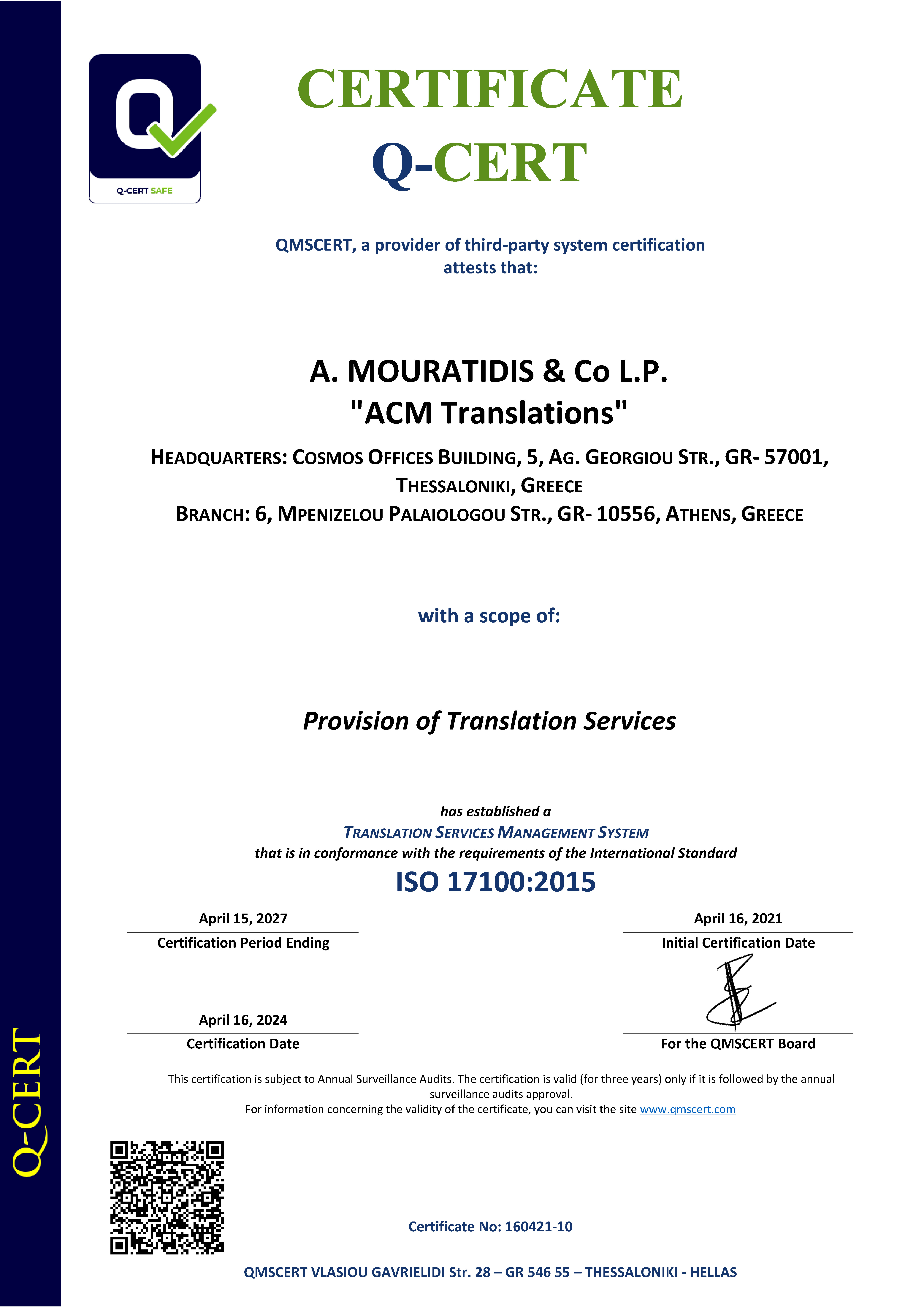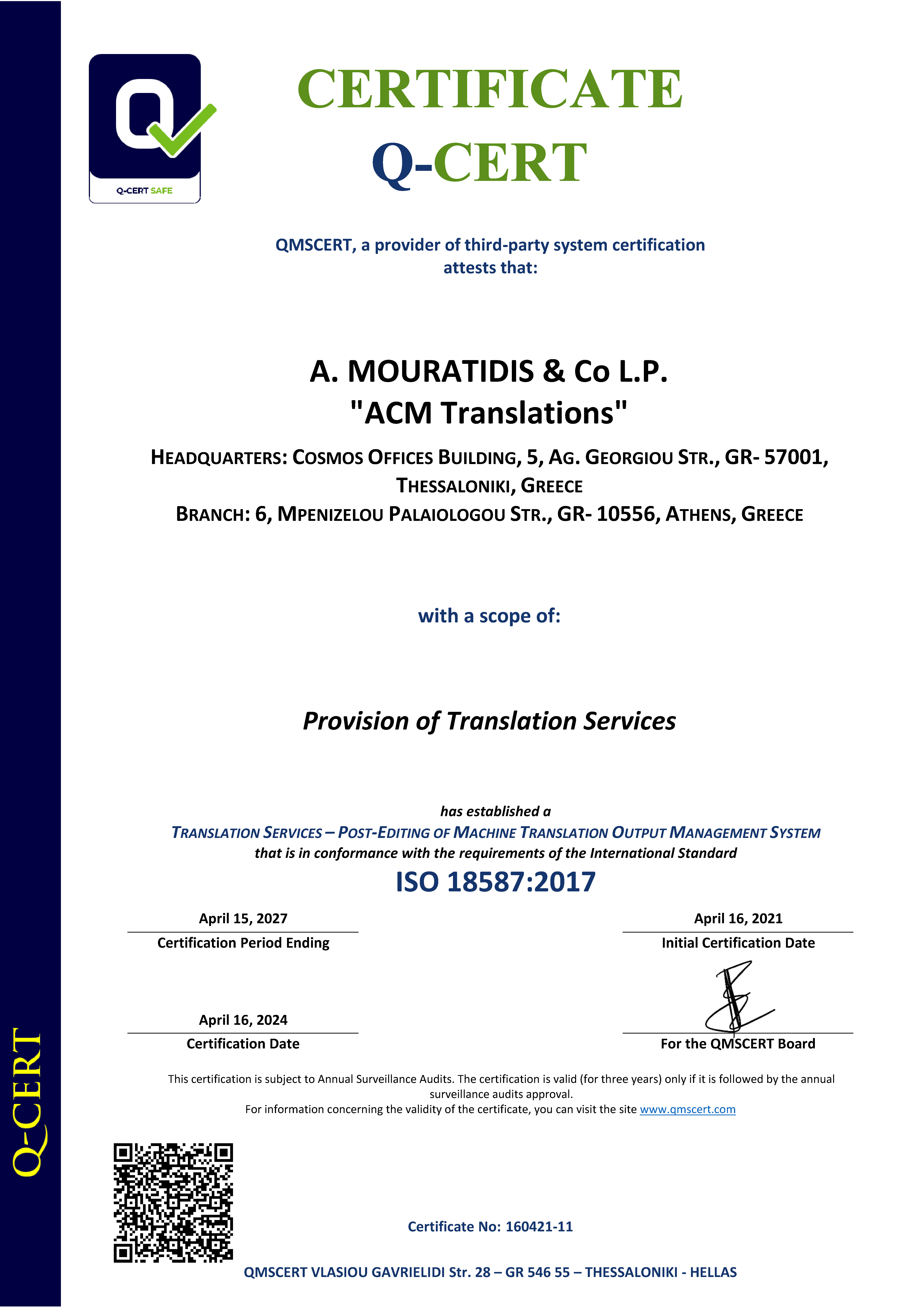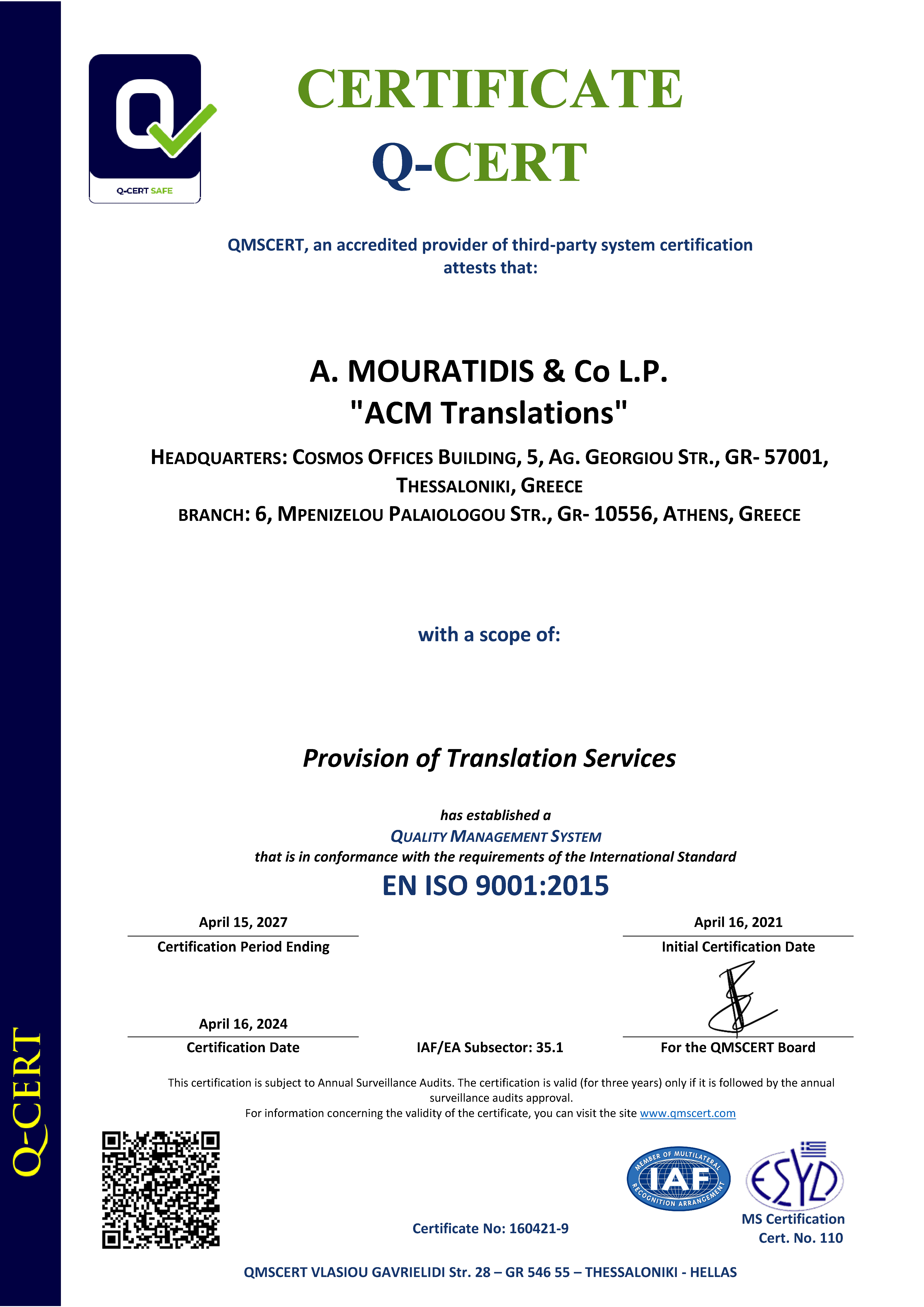 ACM Translations has been certified according to the following ISO standards: